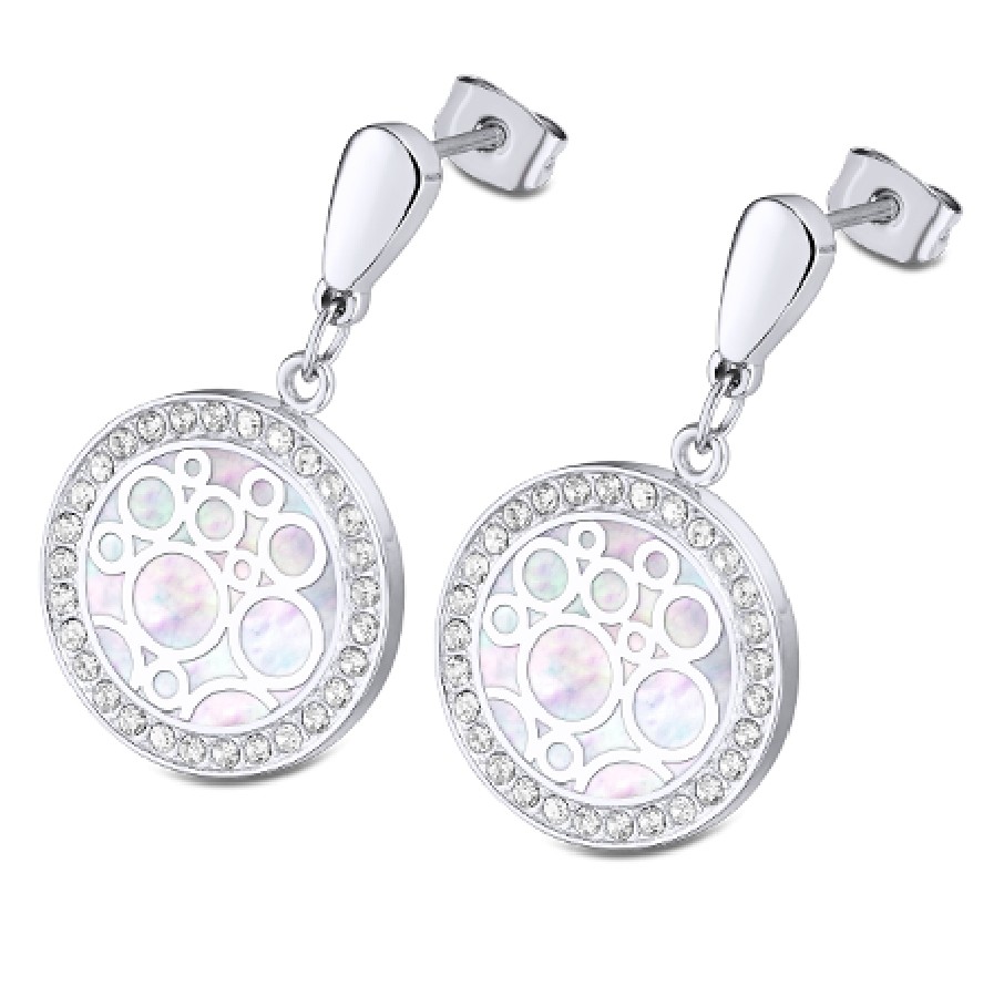 PENDIENTES LOTUS EN ACERO REDONDOS CON CIRCONITAS Para Mujer Color del complemento Plateado Material del complemento Acero Medida Complemento 33 mm