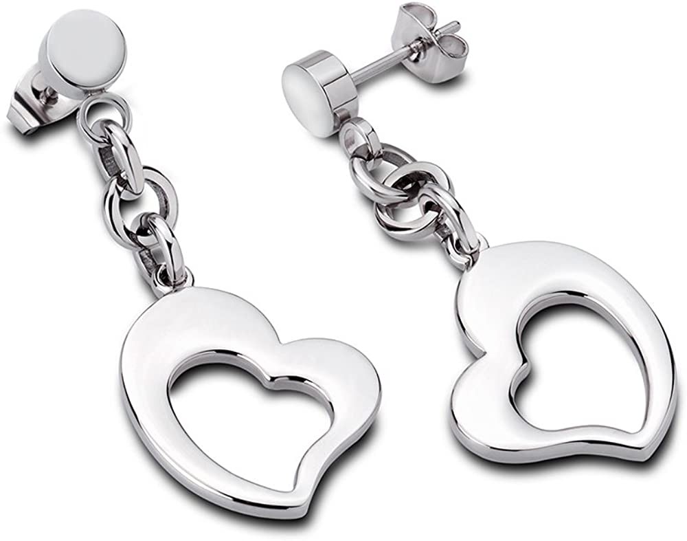 PENDIENTES LOTUS MUJER EN ACERO COLGANDO CORAZONES