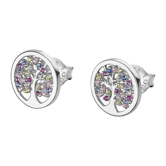 Pendientes Lotus arbol de la vida en plata con circonitas de colores. Cierre tuerca presion