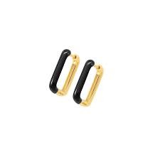PENDIENTES LOTUS PLATA DORADA RECTANGULAR NEGRO LP3574-4/4