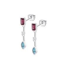 Pendientes Lotus Silver LP3882-4/1, en plata de ley de 925 milésimas, con una circonita engastada en color blanco de 2.25 mm, otras en color amatista y otra en color azul.