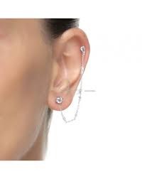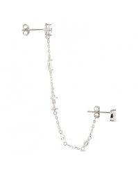 Pendiente Piercing para mujer de la conocida firma Luxenter modelo Samcy de la colección Pide un deseo, elaborados en Plata de ley 925 con un duradero baño de rodio, su llamativo diseño de doble circonita blanca brillante con engaste garra más una cadena central fina con abalorios en circonita blanca que une ambas piezas es perfecto para personas con diversos agujeros en la oreja. Se vende por unidad