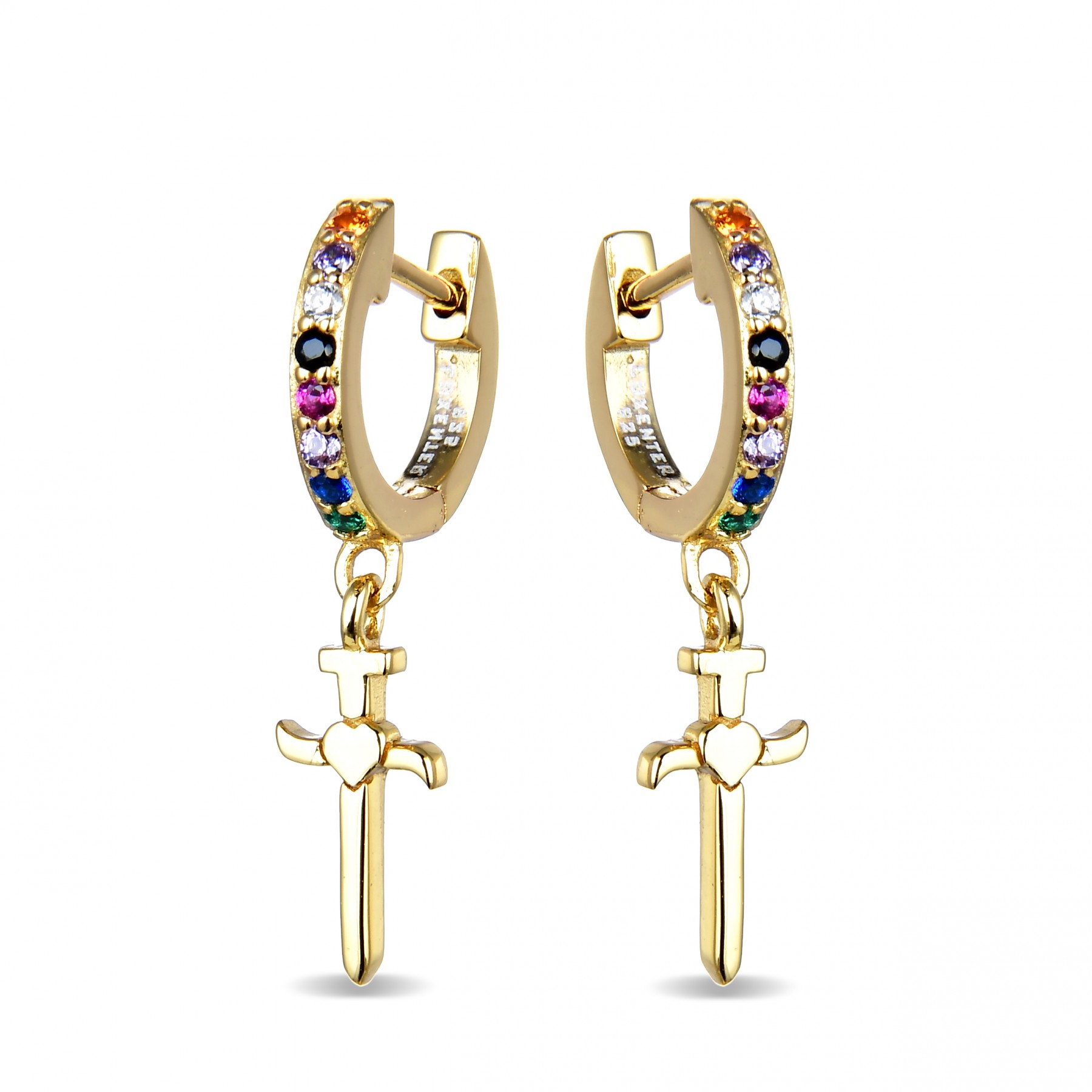 PENDIENTES LUXENTER EN PLATA DORADA DE AROS CON CIRCONITA Y CRUZ EXA276Y0000