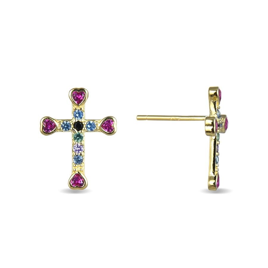 PENDIENTES LUXENTER EN PLATA DORADA CON CRUZ DE PIEDRAS RYSDAK