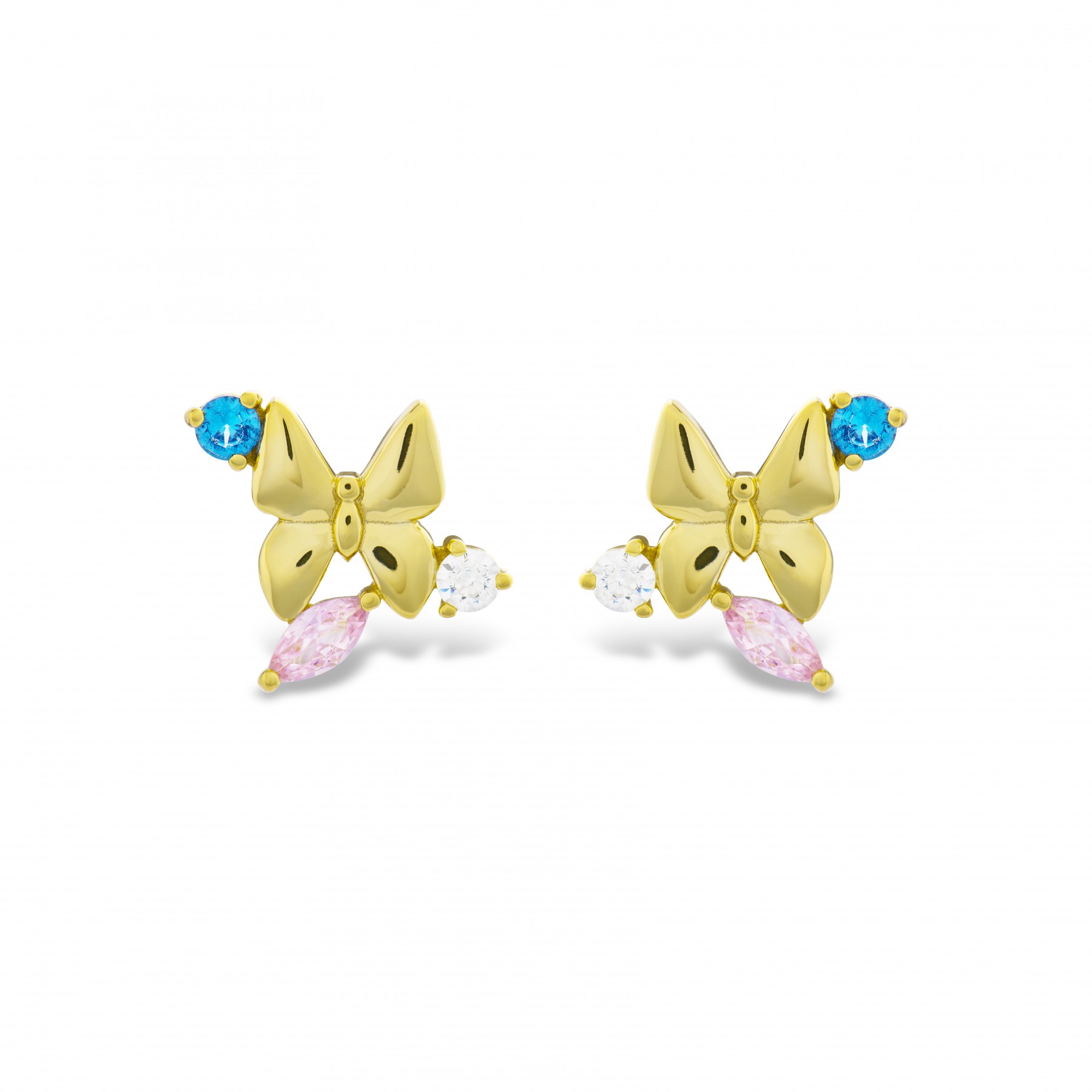 PENDIENTES LUXENTER EN PLATA DORADA CON UN LAZO Y TRES CIRCONITAS A COLOR EXA324Y92000