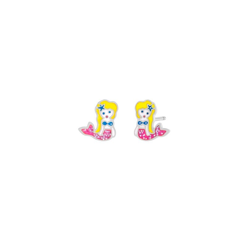pendientes marea girls niña d02401/aw sirena 9x11 milímetros plata de ley 925 rodiada esmalte rosa turquesa y amarillo detalles
