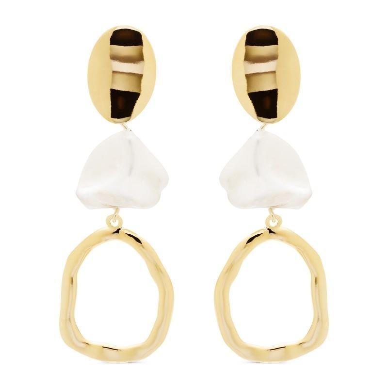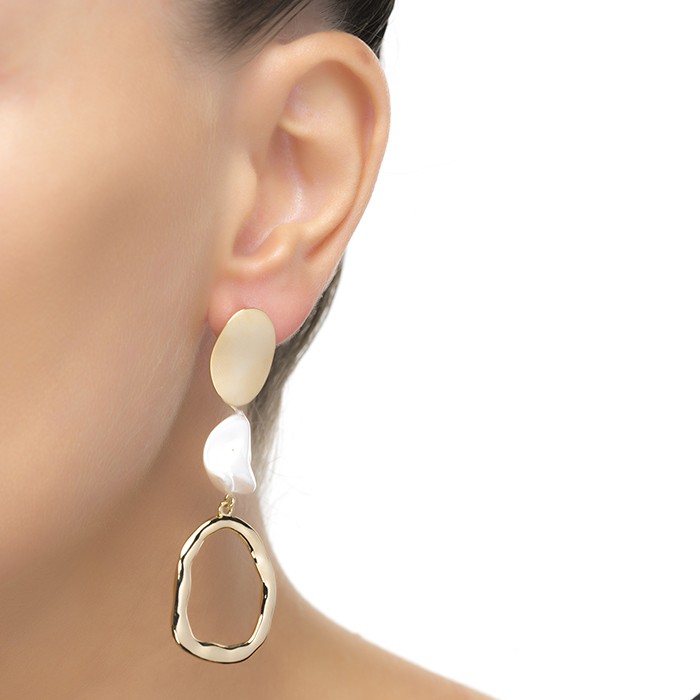 PENDIENTES LUXENTER METAL CHAPADO LARGOS CON PERLA