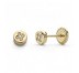 Pendiente en oro amarillo de 18 kilates. Diseño botón con circonitas de talla brillante engastada en grano de oro amarillo pulido. mide 4 mm. Cierre de tuerca especial bebé.