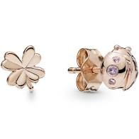 Pendientes Trébol & Mariquita en Pandora Rose, una aleación única de metales con un recubrimiento en oro de segunda ley de 14k, adornados con circonitas cúbicas transparentes.