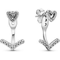 Pendientes de botón Corazón Espumoso Brillante Pandora, en plata de primera ley, ajustables a tres alturas diferentes y adornados con circonitas cúbicas transparentes.