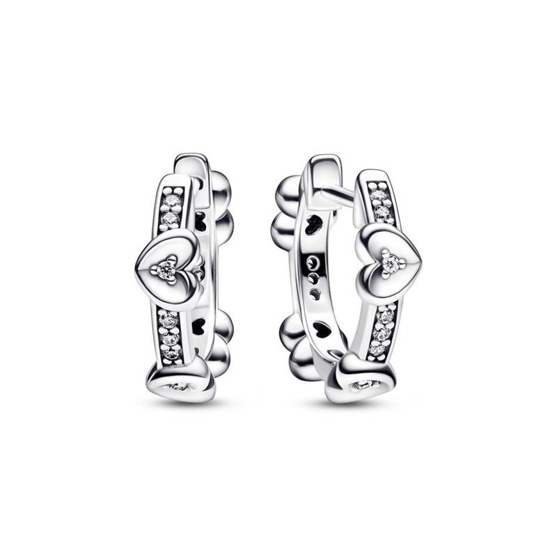 Pendientes Pandora Corazones Radiantes Brillantes para mujer fabricados en plata de primera ley en forma de aro compuestos por piezas en forma de corazón y circonitas brillantes. Su cierre es de criolla.