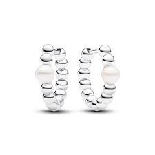 Pendientes Pandora para mujer de la colección Primavera 2024 fabricados en plata de primera ley en forma de aro formado por bolitas de plata con una radiante perla cultivada de agua dulce en suparte frontal. Su cierre es de criolla.