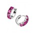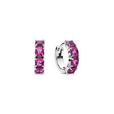 Pendientes Pandora Aros Rosa 293851C02: Pendientes Pandora fabricados en plata de primera ley de tipo aro, adornados con una hilera de cristales facetados de corte cojín en un hermoso tono amatista.