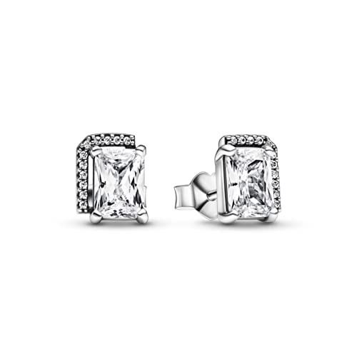 Lleva el efecto de halo. Nuestros pendientes de botón halo rectangular brillante aportan elegancia clásica a tu look de diario, y están elaborados en plata de ley con circonitas cúbicas rectangulares de talla radiante. Elaborados con un halo de pavé que rodea la mitad de cada pendiente, estos llamativos pendientes reinterpretan la estética tradicional del halo para crear modernos artículos de joyería.