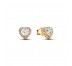 Pendientes Pandora Corazón Elevado Brillante para mujer de la colección San Valentín 2024 fabricados en aleación de metales bañados en oro amarillo de 14Kt de tipo botón con una circonita central en forma de corazón rodeada de circonitas brillantes. Su cierre es de presión.
