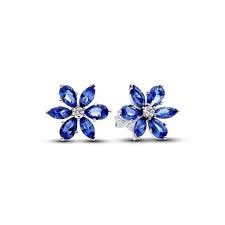 Pendientes Pandora Herbario Brillante Azul para mujer de la colección Navidad 2023 fabricados en plata de primera ley de diseño de tipo botón adornados con circonitas cúbicas transparentes redondas, y cristales artificiales azules facetados en forma de pera y marquesa. Su cierre es de presión.