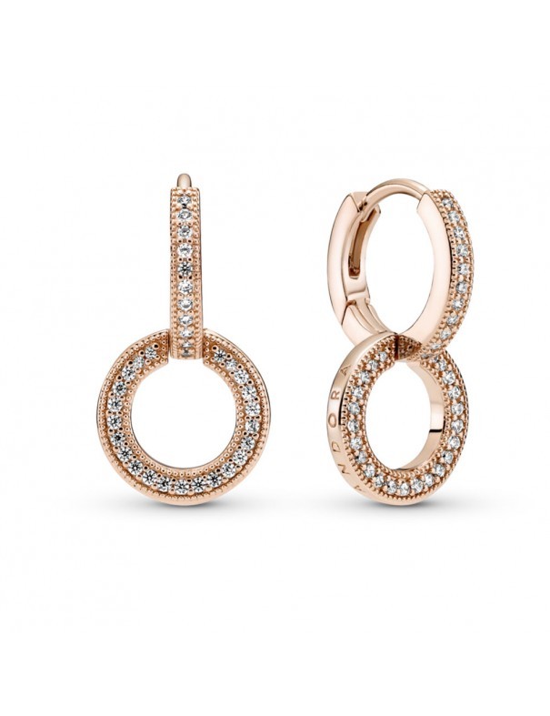 Pendientes Pandora en plata Rose , Pandora Rose, aleación de metales con recubrimiento de oro de 14kts, decorados con circonitas. Cierre de bisagra.