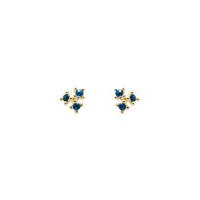 Pendientes Daisy de PdPaola para mujer fabricados en plata bañada en oro. Se trata de unos pendientes de diseño sencillo pero a la vez llenos de elegancias formados por 3 circonitas blue light que darán elegancia y colorido a tus looks.