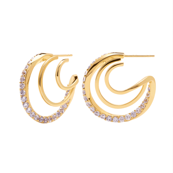 pendientes ready-to-wear son perfectos para lóbulos con una sola perforación por su efecto de triple piercing. Circonitas lavanda protagonizan su diseño, hechos de Plata de Ley 925 bañada en Oro de 18k. La colección se sumerge en una atmósfera opulenta y guerrera: Cavalier emerge como el nuevo barroco simplificado.