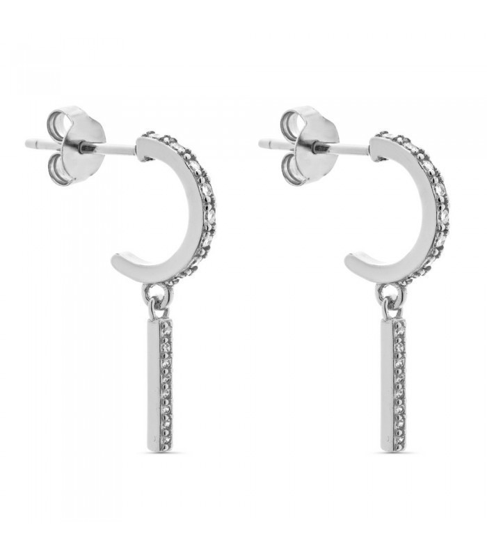 PENDIENTES EN PLATA MEDIO ARO CON BARRA CIRCONITAS