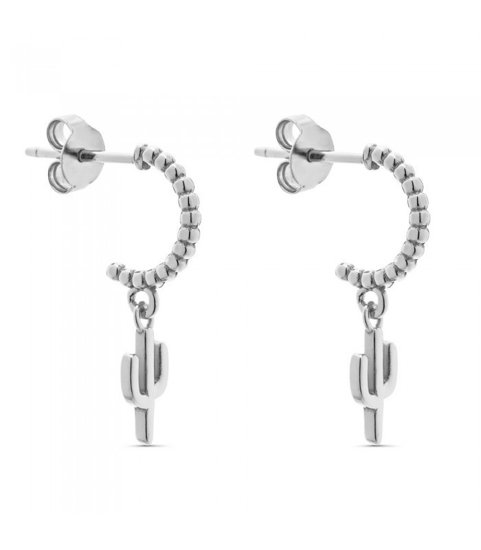 PENDIENTES DE PLATA MEDIO ARO BOLITAS CON CACTUS
