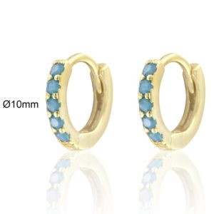 Pendiente plata dorada tipo aro de 15 mm de diámetro con circonita de color turquesa