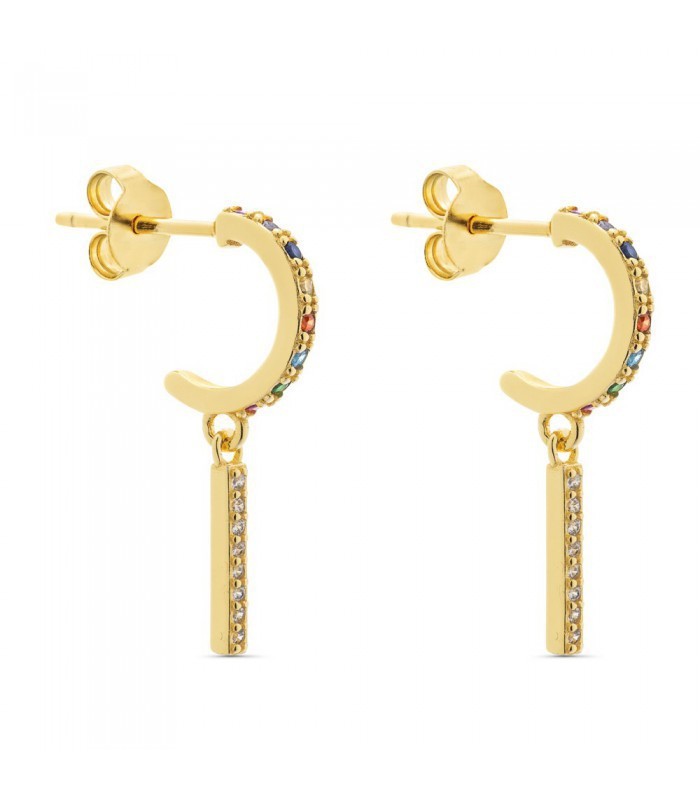 PENDIENTES EN PLATA CHAPADA DE MEDIO ARO CON BARRA DE CIRCONITAS