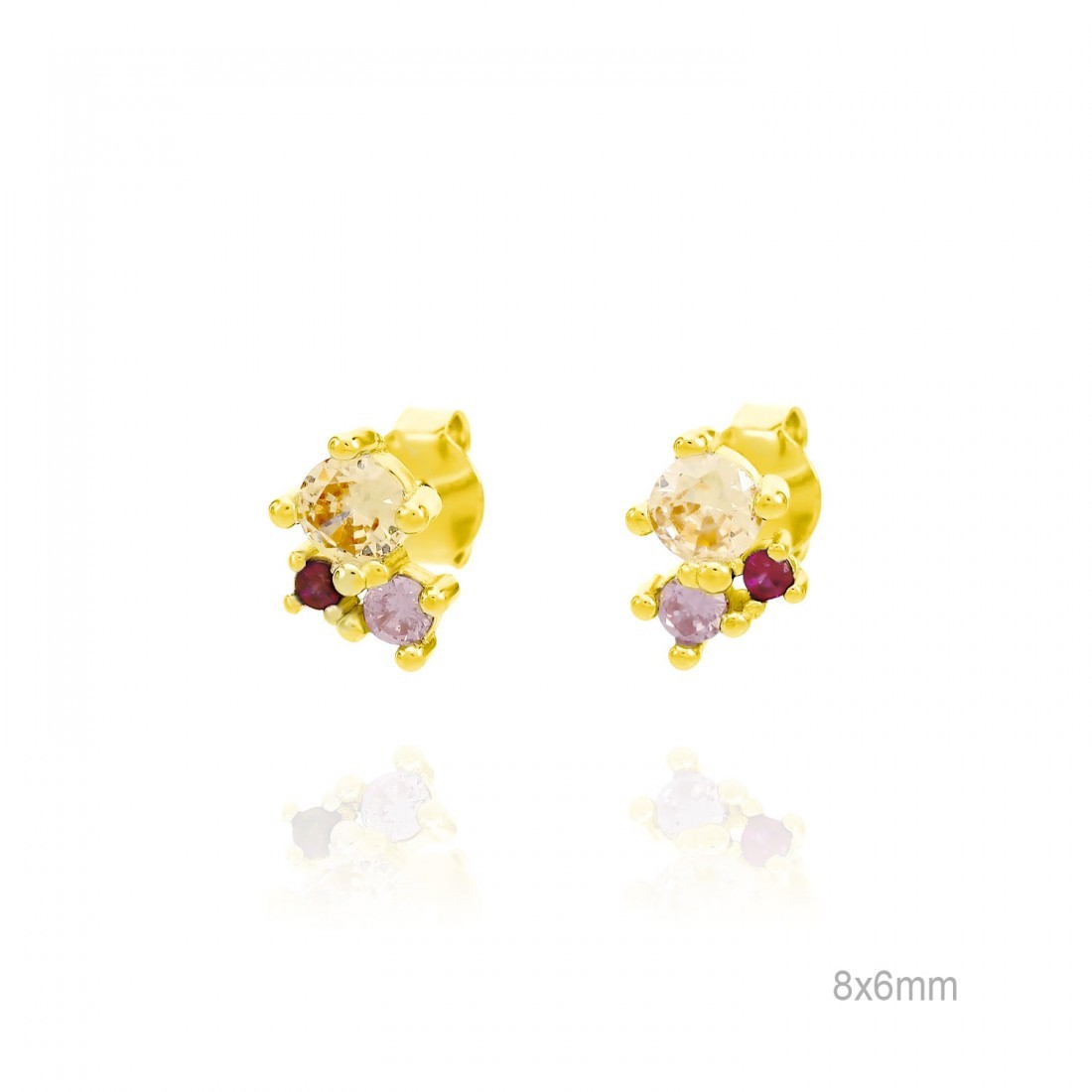 Pendientes presión en Plata de Ley 925 chapados en oro con circonitas de color. Tamaño: 8*6 mm. Tipo de cierre presión.