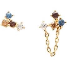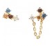 Plata de ley 925 con un baño de oro de 18 quilates se combina con corindón azul zafiro, rodolita, reflejos dorados, blanco puro y tonos champagne que dan un giro a esta pieza convirtiéndola en una delicada joya.