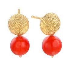 PENDIENTES PLATA DORADA CON BOLA CORAL 2,5CM 00510774