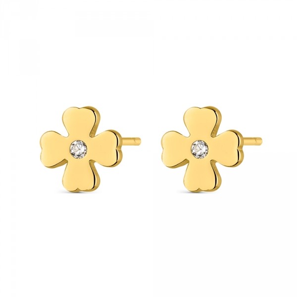 PENDIENTES PLATA DORADA TREBOL 8MM CON CIRCONITA 9111466