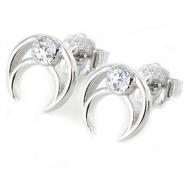 Pendiente De Plata Luna Invertida Calada De 9 Mm Con Chatón Color Cierre Presión