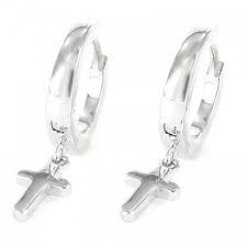 PENDIENTES PROMOJOYA EN PLATA DE ARO 12mm CON CRUZ COLGANTE