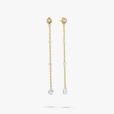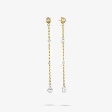 Pendientes Radiant Myfair Drop mujer RY000261, Fabricados en acero inoxidable dorado con un acabado brillante. Estos pendientes destacan por su diseño colgante de cadenas finas adornadas con cristales transparentes cuidadosamente seleccionados. El detalle de la gota en la parte inferior aporta movimiento y luminosidad, creando un accesorio ideal para destacar en cualquier ocasión.