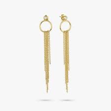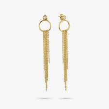 Pendientes Radiant Myfair mujer RY000263. Estas piezas están elaboradas en acero inoxidable de alta calidad con un acabado dorado brillante que garantiza durabilidad y resistencia. Su diseño, compuesto por aros finos y múltiples cadenas colgantes, aporta movimiento y dinamismo, creando un efecto visual impresionante que captura la atención.