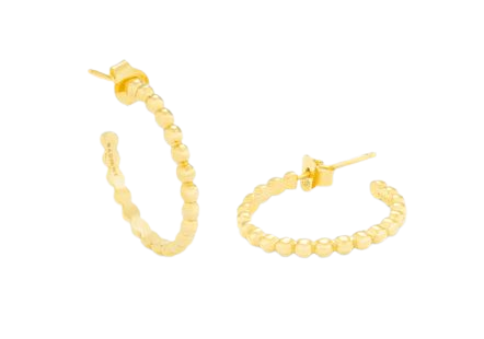 Aritos medianos dorados diseñados como si estubieran hechos de mini bolitas. La colección Dots forma parte de nuestro estilo ""Art"", pues, cada pieza es tratada de forma individual e, igual que las obras de arte, ¡ cada pieza es única! Dentro de esta colección podrás hacerte tu conjunto ""fondo de armario"", pues, sus piezas son todas básicos facilísimos de combinar con cualquier look. Todas nuestras piezas están diseñadas en plata, con baños en oro de 24 quilates y circonitas."