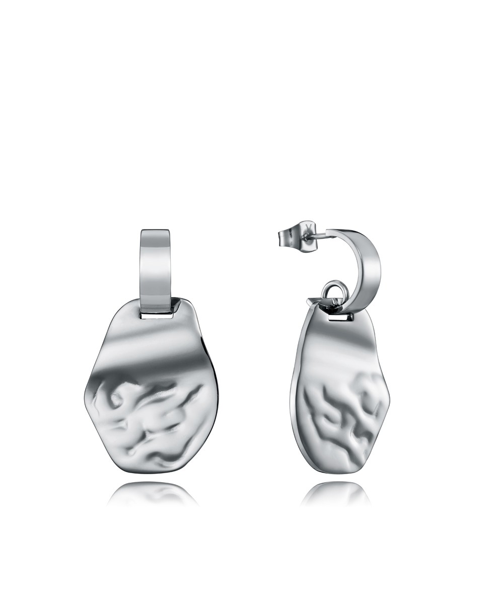 Pendientes Viceroy Air de acero con aro y colgante en forma de placa de metal fundido.