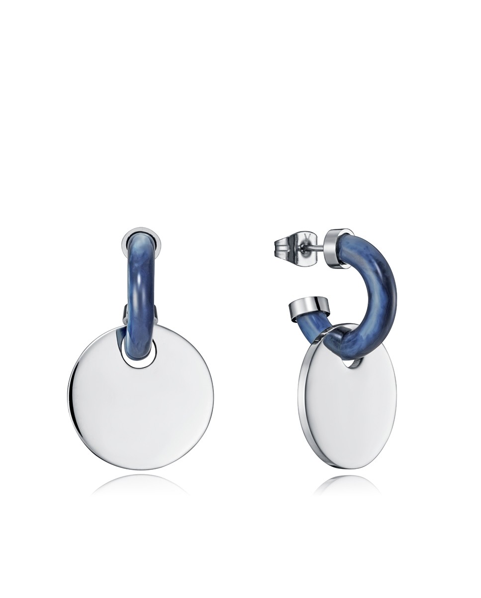 Pendientes Viceroy Air en acero con aro de resina azul y disco de acero liso.