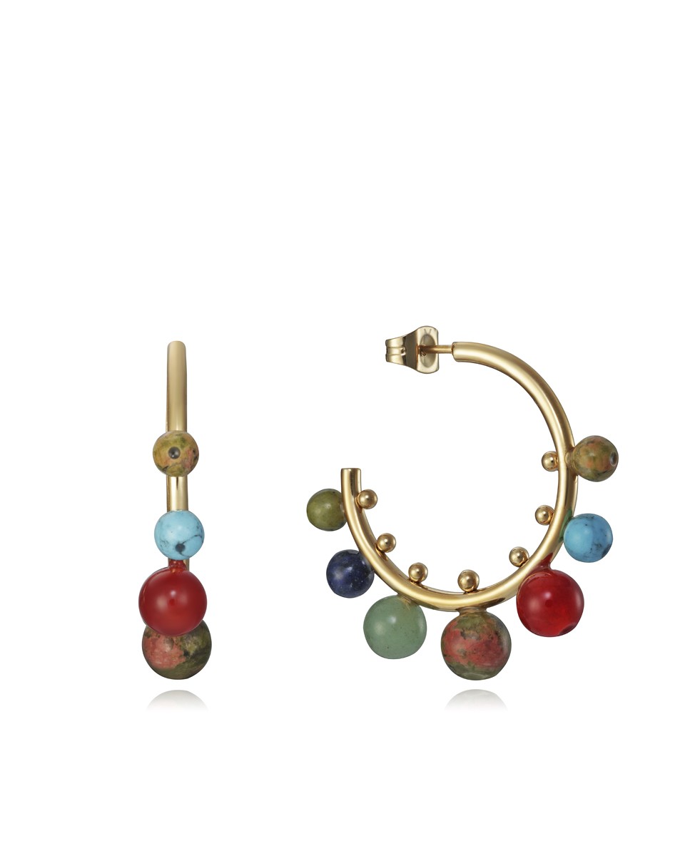 Pendientes Viceroy Kiss en forma de aro en Ip dorado con bolas de diferentes colores