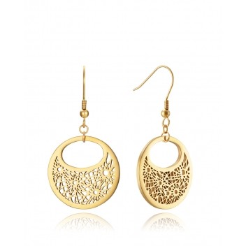 Pendientes Viceroy Chic de acero IP dorado diseño tipo moneda con flores caladas y cierre tipo gancho. Largo total 47mm.