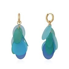 Pendientes Viceroy Kiss 14031E01016 de acero chapado en oro con discos de resina azul y verde. Largo: 5,5 cm