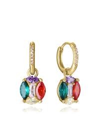 Unos pendientes que combinan elegancia y frescura en un diseño lleno de vida. Elaborados en plata de primera ley con un delicado baño de oro, presentan un aro adornado con circonitas blancas que aportan un brillo sofisticado. El colgante con circonitas de colores añade un toque vibrante, creando un contraste perfecto entre la luz sutil del blanco y la energía de los tonos multicolores. Con un largo de 2,3 cm, ofrecen la medida ideal para realzar el rostro con delicadeza y estilo.