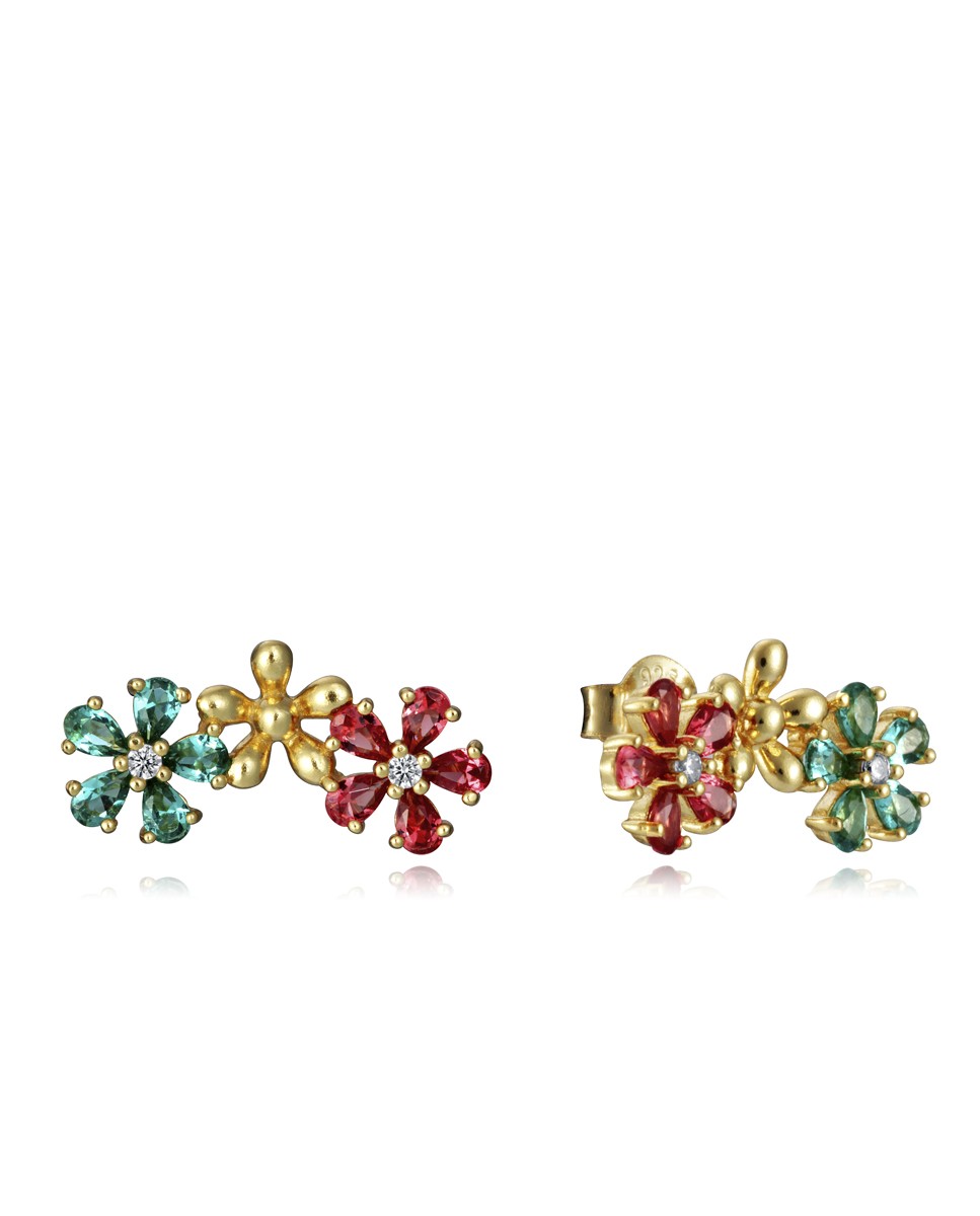 Pendientes Viceroy Trend plata con baño de oro y flores engastadas con circonitas en multicolor