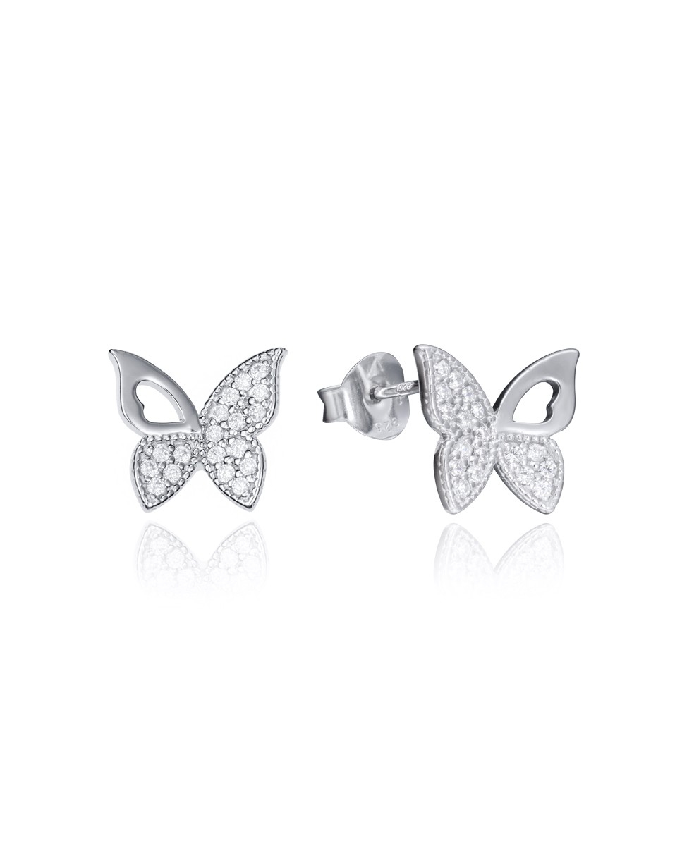 Pendientes Viceroy Popular de plata de ley bañada en rodio con forma de mariposa con circonitas en 3 de las 4 alas . Cierre a presión. Largo de 11 mm