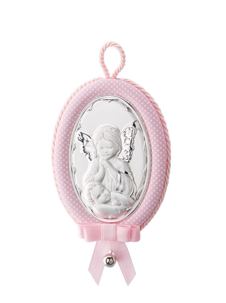 PLACA CUNA MUSICAL ANGEL ROSA OVAL GLOBAL ARGENTI 51823/01R
