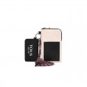 Portamóvil-Mini Neceser TOUS para mujer de la colección Empire fabricado en nylon reciclado color nude y negro. Cuenta con cierre exterior de cremallera. El portamovil posee un bolsillo plano en su exterior y cuerda larga que está enganchado al minineceser con un anilla extraible.