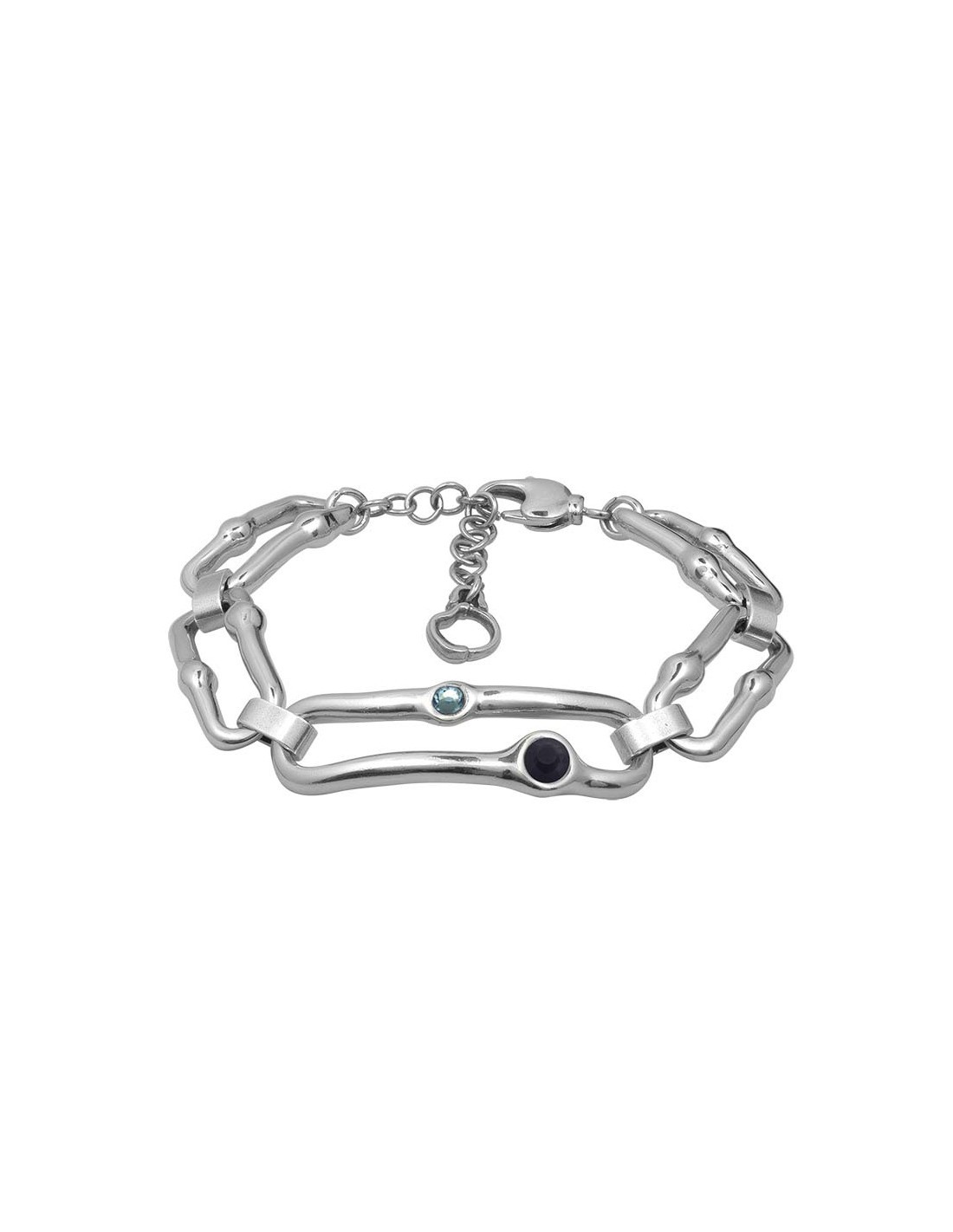 Pulsera Azami bañada en plata de la Colección Saori inspirada en la filosofía Feng Shui. Eslabones con diseño de planta de Bambú decorados con cristales de Murano con acabado perlado. Disponible en 4 combinaciones de color. Talla única de 17 a 21 cm. Cierre de mosquetón.