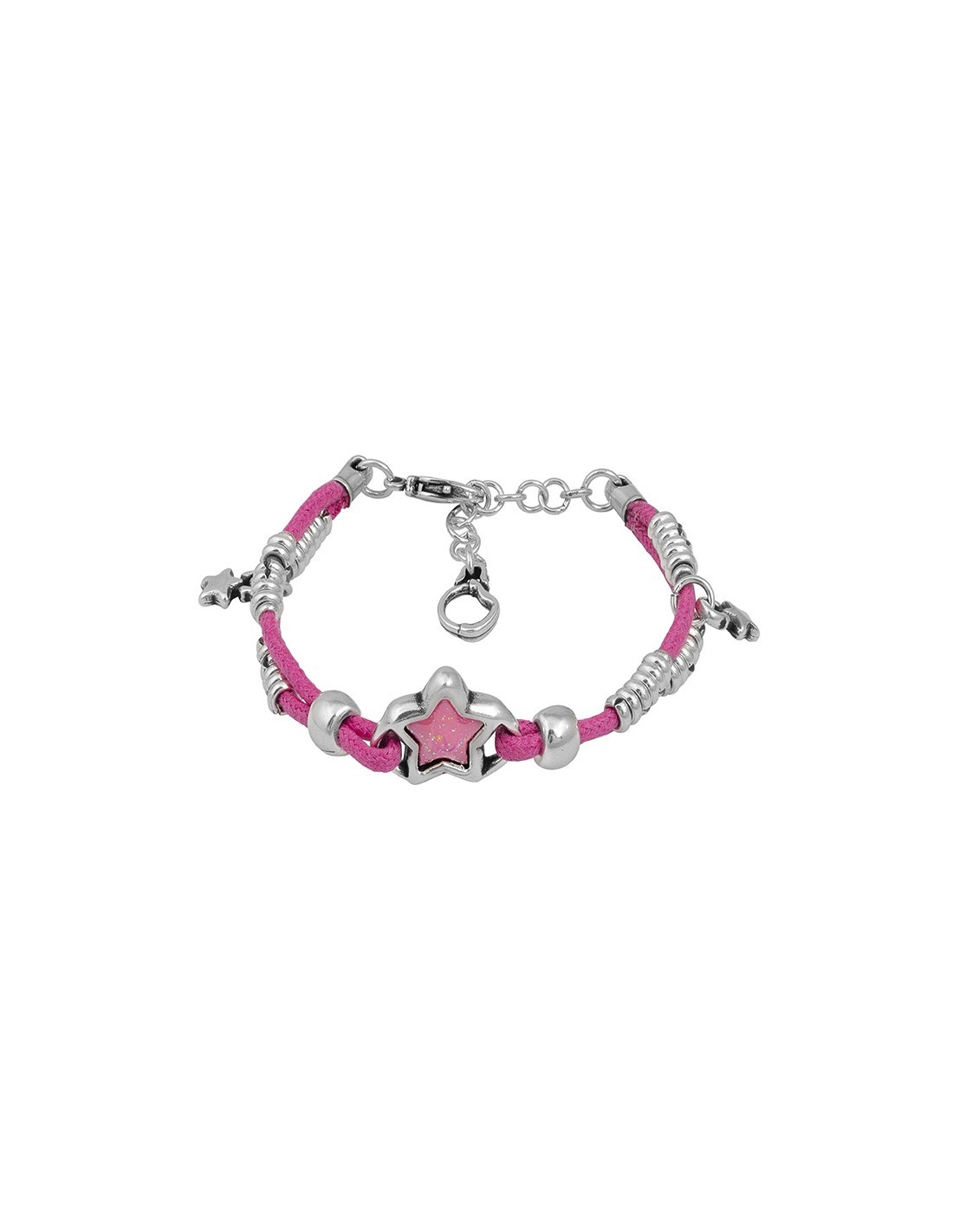 Pulsera Lucía con cadena de algodón bañada en plata de la Colección Estela. Diseño con cuentas, estrellitas y estrella central de 10mm con cristal Murano a elegir entre 6 colores. Disponible en talla única de 18 a 22cm. Cierre de mosquetón.
