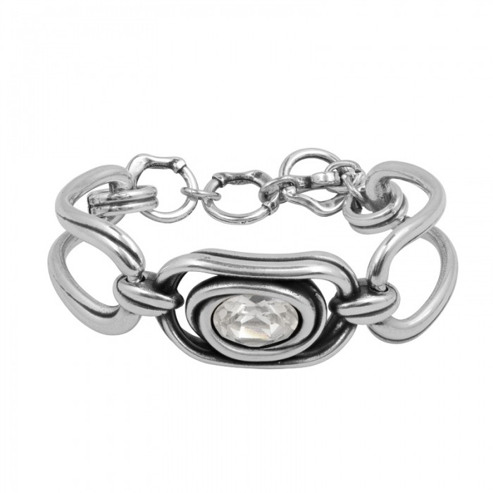 Brazalete Conexión semirígido. Eslabón central con vídrio checo y cierre en T. Una joya fabricada en metal hipoalergénico que lleva un baño de plata de 15 a 20 micras.