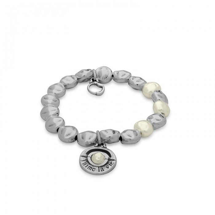 Pulsera La Vie elástica y charm original de Ciclón con grabado J´aime la vie. Disponible en talla única de unos 18cm. Está fabricada en material hipoalérgenico y bañada en plata.